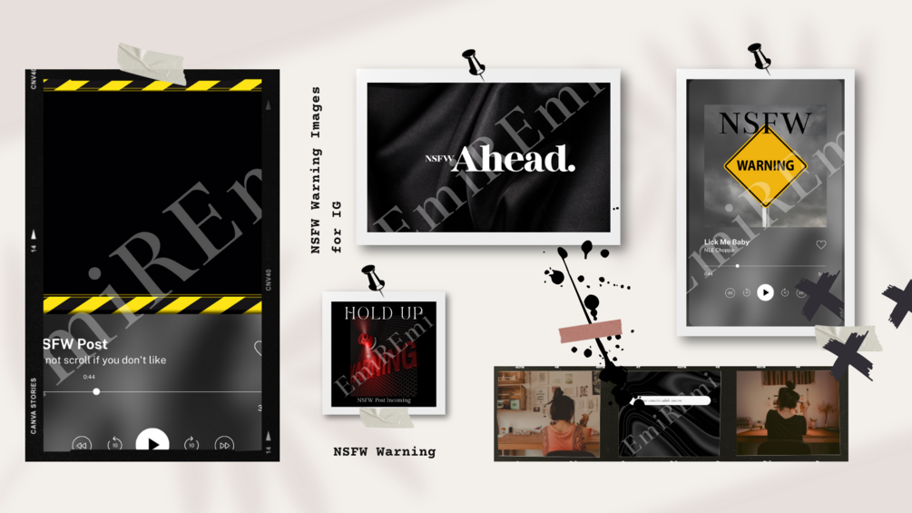 Use these as warnings for nsfw IG posts. They are already formatted to IG. If you want a custom one just contact me through my discord <3